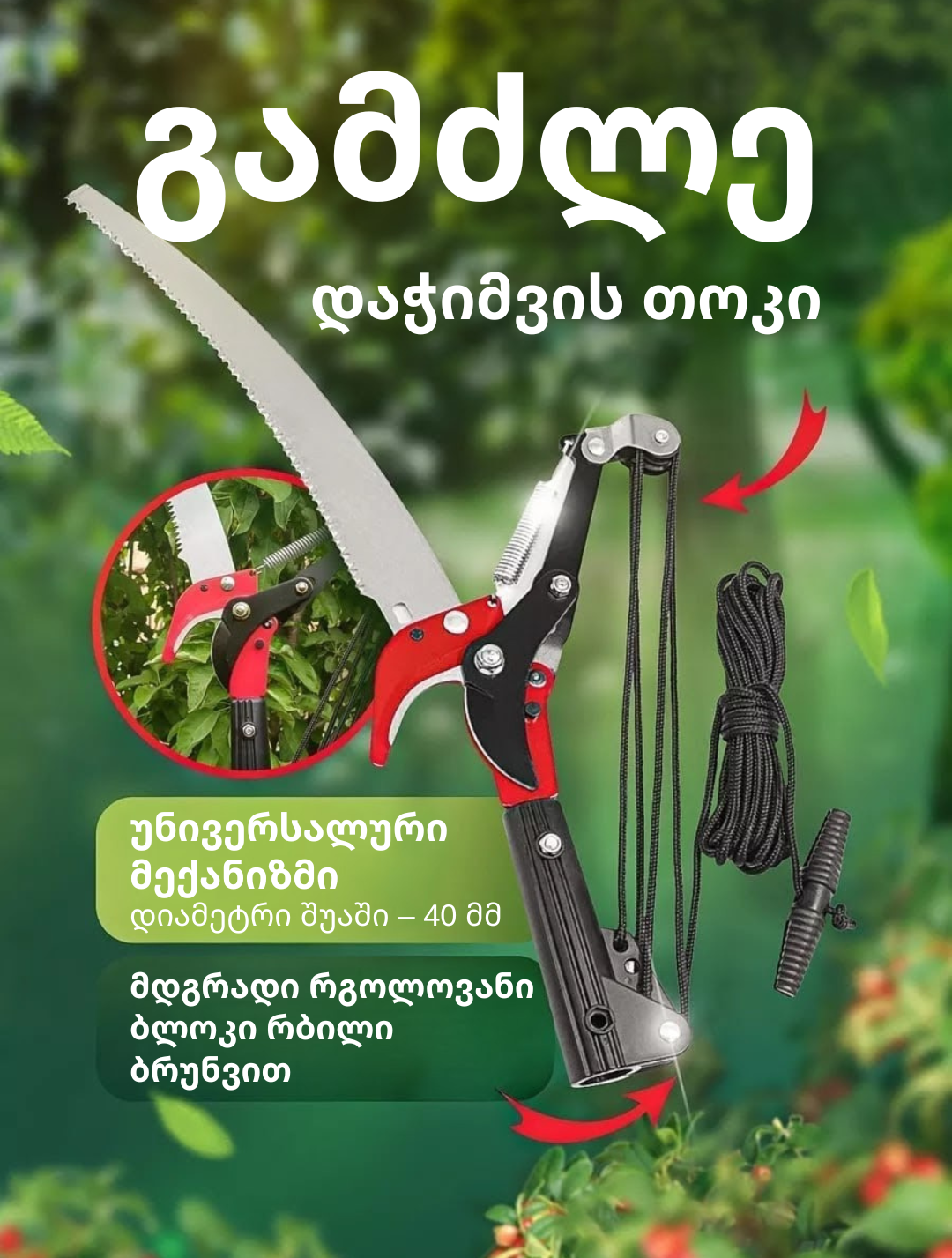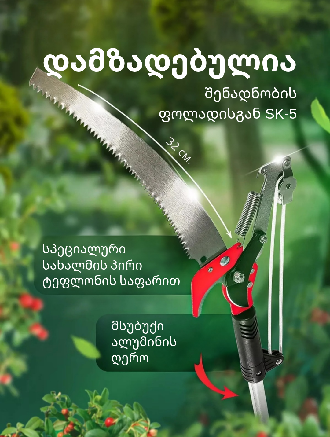 ტელესკოპური ბაღის მაკრატელი 2-ში 1 — ეს არის შეუცვლელი ინსტრუმენტი მებაღეებისთვის, რომელიც განკუთვნილია მაღალი ტოტების მოსაჭრელად. მისი კონსტრუქცია უზრუნველყოფს კომფორტულ და უსაფრთხო მუშაობას კიბის გარეშე.